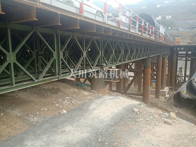 棧橋型號(hào):便橋采用(4×12m)+3m+9m+(2×12m)+3m,9跨貝雷架鋼便橋,橋梁全長88.7m,橋梁寬度12m。
