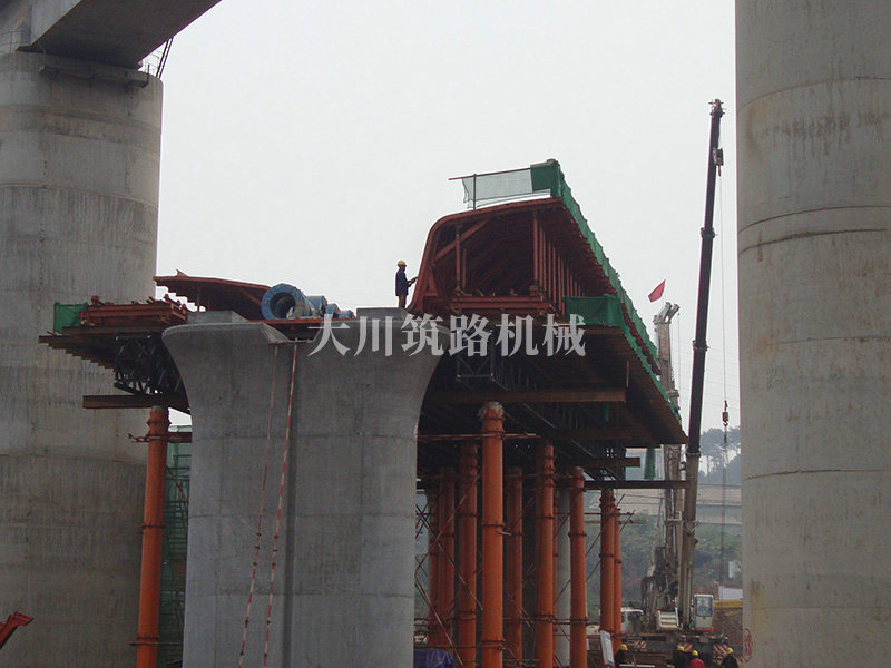 特點(diǎn):因滬昆高鐵跨過武廣高鐵,為了減少對武方高鐵的正常運(yùn)行,主梁和武方高鐵平行澆筑,然后懸轉(zhuǎn)跨越武廣高鐵,在當(dāng)時引起全國同行關(guān)注。使用的貝雷片數(shù)量達(dá)到2000片以上,于2011年12月投入使用。